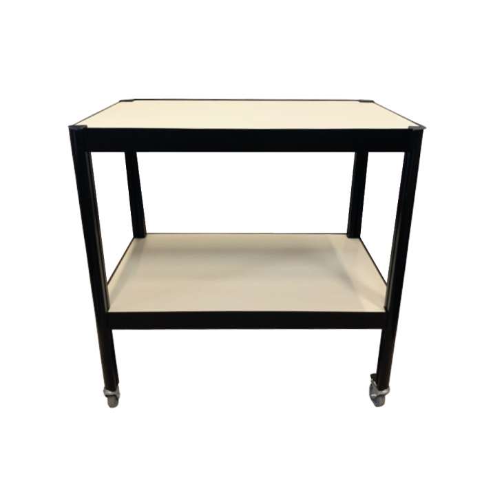 Desserte roulante alu avec plateaux simili cuir noir