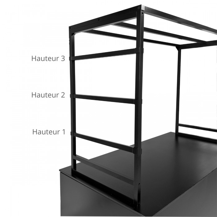 - Elle sert également de support pour ajuster la hauteur de la tablette coulissante centrale, vous permettant de créer différents niveaux de présentation.