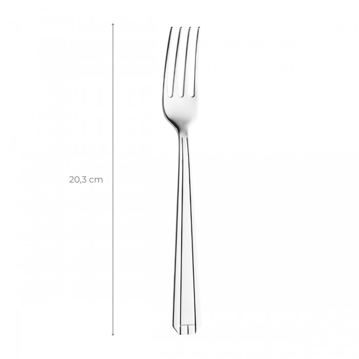 La fourchette de table Normandy apporte une touche d’élégance intemporelle à vos réceptions et événements. Inspirée du style Art déco, elle séduit par ses lignes géométriques épurées et son équilibre parfait entre modernité et raffinement. Conçue en inox et dotée d’une finition miroir éclatante, elle capte la lumière avec finesse.