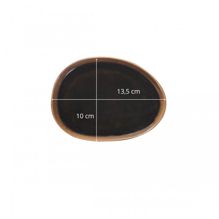 La glaçure réactive sur le dessus crée des nuances subtiles et uniques, tandis que le rebord marron apporte une touche de chaleur et de caractère. Le dessous, en émail sablé, offre une texture agréable au toucher, ajoutant de la profondeur et de la sophistication à chaque pièce. Chaque assiette est ainsi unique, offrant un service élégant et distinctif pour vos réceptions.