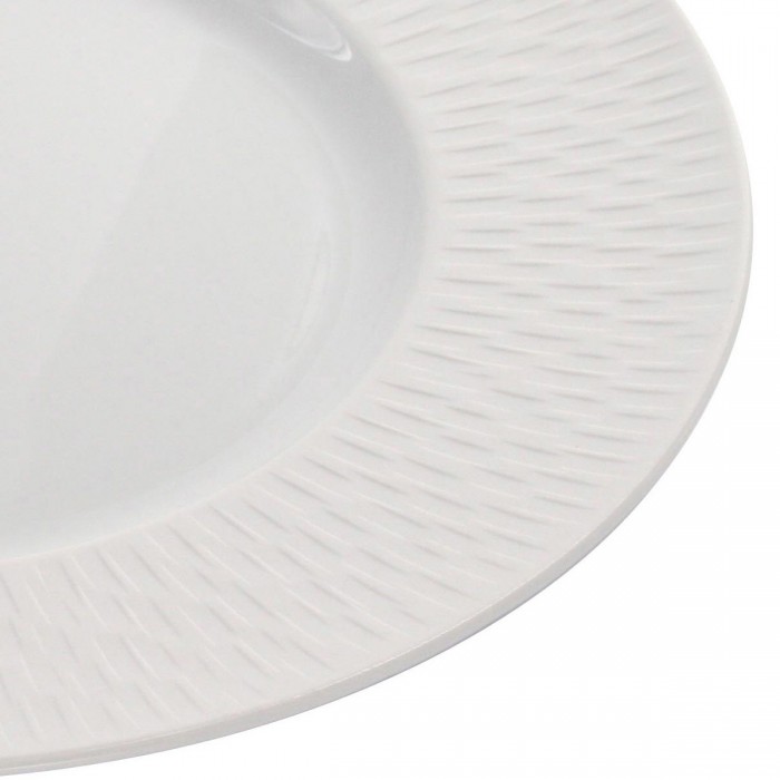 Conçue en porcelaine extra blanche de haute qualité, cette assiette repas présente une forme classique et intemporelle, sublimée par de délicats décors en relief. Sa finition satinée offre un éclat subtil et une douceur au toucher, renforçant son allure sophistiquée.
