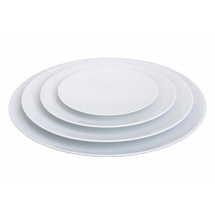 Disponible à la location, la gamme Boléro comprend : l'assiette creuse (Ø27), l'assiette entrée/dessert (Ø21,5) et l'assiette de présentation (Ø31,5).