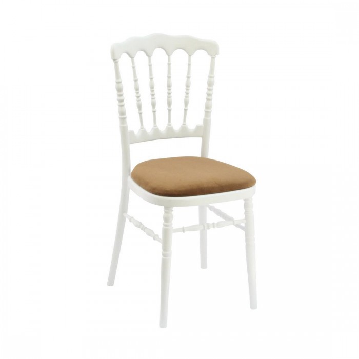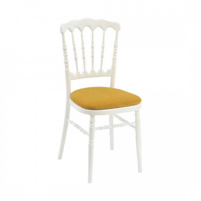 La chaise Napoléon III est disponible à la location en 3 coloris : or, noir et blanc.
