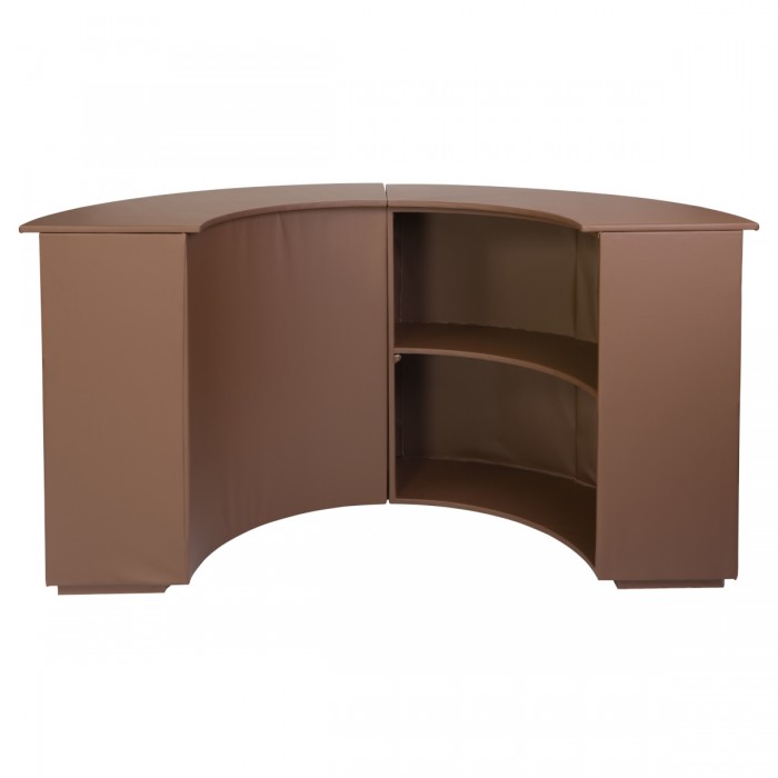 Transformez l'ambiance de votre événement avec le comptoir Lord. Idéal pour un poste de boisson ou une banque d’accueil, il joue la carte de sophistication avec ses lignes incurvées. Fabriqué dans nos ateliers avec soin, ce comptoir est revêtu de simili cuir chocolat, une teinte à la fois sobre et chaleureuse. Le simili cuir est non seulement esthétique mais aussi facile à entretenir, garantissant que votre comptoir reste impeccable tout au long de votre événement.