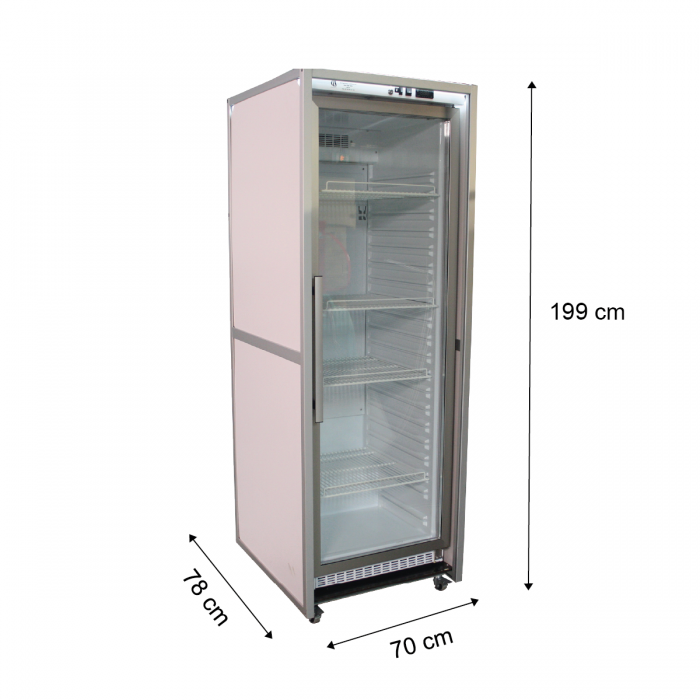 Ce réfrigérateur mobile est conçu pour faciliter l’organisation de vos événements et réceptions. Avec sa porte vitrée, il offre une vue directe sur son contenu, permettant aux équipes de service de repérer rapidement les produits stockés. D'une capacité de 400 litres, il est équipé de quatre grilles de 50 x 51 cm, offrant un espace généreux pour organiser boissons et aliments de manière efficace. Grâce à ses roulettes robustes, ce réfrigérateur peut être déplacé aisément et installé à proximité de vos espaces de service, optimisant l'accès et la praticité tout au long de l’événement.
